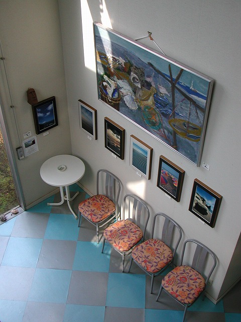 ここ当ハウスもアートあふれるペンションです。 東本つね氏の油絵  リ、チャンスップ氏の鉄オブジェ  李容日氏のデジタル画  山岸俊之氏の古木オブジェと写真  星孝氏の貝殻壁画  三輪暁氏の抽象日本画   大谷信之(オーナー)の海の写真などに出会えます。
